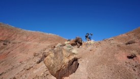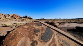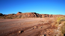 À proximité, un pan de butte semble présenter des caractéristiques propices à du rock art. Nous allons regarder de plus près. Nous ne sommes pas à l’abri d’une belle surprise. Mais nous restons bredouilles. Bah, on ne peut pas gagner toutes les fois.