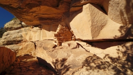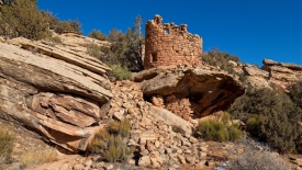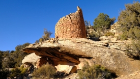 Painted Hand Pueblo fut un village constitué d’une vingtaine de pièces construit vers l’an 1200. Une magnifique tour, posée sur un rocher, un panorama d’exception, tempèrent la déception de ne trouver que deux mains blanches, presque estompées, sur un mur.