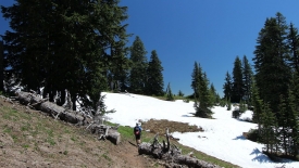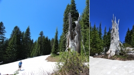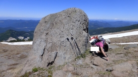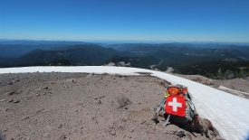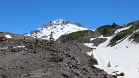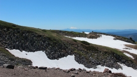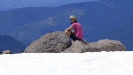 Nous avons fait des émules : un couple de jeunes nous rejoint. Ils sont de Portland et connaissent à priori bien la région. Ce sont eux qui nomment le Mount Jefferson. Elle nous dit qu’il y a deux jours elle est monté au sommet du Mount Hood. L’équipement de base, nous dit-elle, est composé de crampons et d’un piolet. Lui n’est pas monté au sommet mais nous confie que le cratère et ses fumerolles sont facilement accessibles. OK, c’est noté !