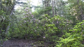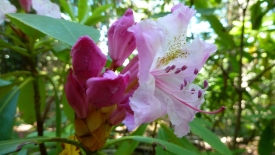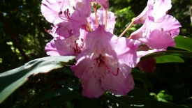 Le sentier est bordé de rhododendrons en fleurs. C’est magnifique.