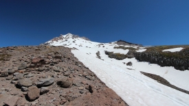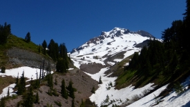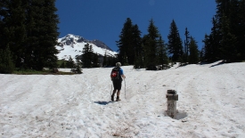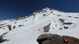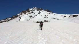 Nous quittons le sentier officiel et partons en direction du Mont Hood, face à la pente.