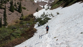 Nous nous lançons dans la descente qui nous rappelle furieusement la descente du Camp Muir.