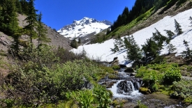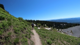 Nouvelle jonction. Nous avons rejoint le Timberline Trail. Côté Est, la Timberline Lodge, au bas des remontées mécaniques. En ce dimanche du 4 juillet, il doit y avoir foule. De l’autre, les Ramona Falls. Elles font partie de la liste des randonnées que Stefano a préparée pour cette semaine. Nous optons donc pour Paradise Park via le Paradise Trail.