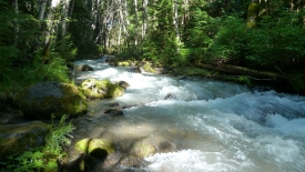 Nous traversons au péril de notre vie le Lost Creek, un torrent impétueux, pour retrouver, quelque mètres plus loin, assis sur un banc, un local, propriétaire de la paire de skis. Nous échangeons quelques mots.