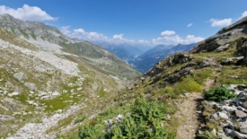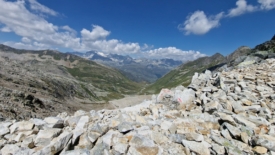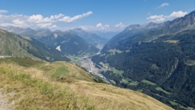 De l’autre côté, côté nord, nous avons une vue plongeante sur la vallée qui mène Realp et la route du Furka. Et, si je ne me trompe pas, le glacier du Rhône.