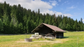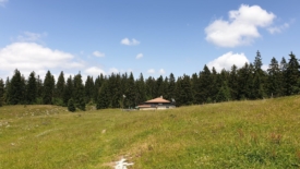 Ce bout de route nous mène aux Chenevières. Le chalet n’est plus habité. Quel dommage. Nous nous rappelons qu’il y a quelques années (en tout cas plus que 7), nous nous étions arrêtés, en fin d’après-midi, pour discuter avec la bergère des lieux.