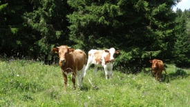 Impossible de déterminer si les génisses du pâturage des Echadex sont amicales ou non. Nous gardons donc nos distances et faisons même un crochet puisque, ne se décidant pas à libérer le chemin, nous nous retrouvons derrière des croupes et donc potentiellement derrière des sabots.