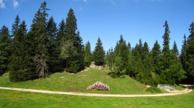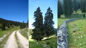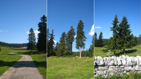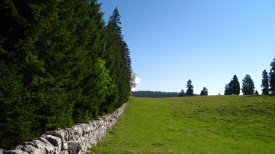 Mais le Jura, c’est un peu comme les chemins qui mènent à Rome. Nous retrouvons toujours un point connu, ici la route du Col du Marchairuz et le Pré de Rolle. Au menu sapins bien droits et joli mur de pierre.