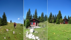 Nous arrivons dans le pâturage des Petites Chaumilles. Là, deux petits chalets privés et ravissants nous attendent.