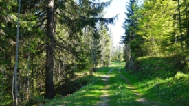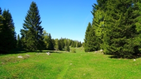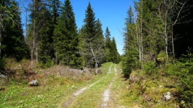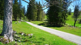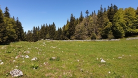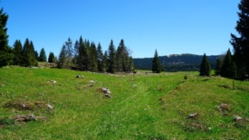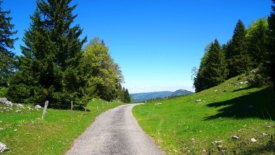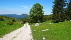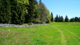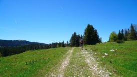 Cette portion de piste forestière est une des plus belles sections de la balade : nous avons une magnifique vue à 180° sur les crêtes dont une n’est autre que le Mont Tendre.