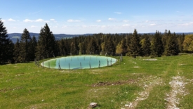 Nous suivons le sentier qui part de La Blondine en direction de la France et trouvons, pas très loin, un réservoir…