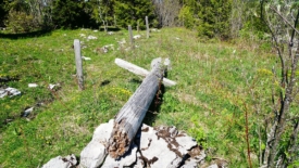 Sans l’avoir cherché, nous tombons sur un petit couvert. Celui-ci va être difficile à baptiser, vu qu’il y a déjà un Couvert des Croisettes ! Pour finir, nous l’avons appelé le Couvert du Haut du Mollendruz.