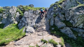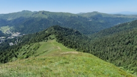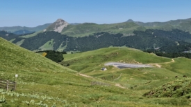 Sauf que nous partons vers le Super Lioran, station de ski légèrement plus haute que sa petite sœur. Ici les télésièges sont ouverts de même que quelques magasins de location de vélo. La fin d’année scolaire étant très proche, nombreux sont les groupes d’enfants ou d’adolescents qui gravitent autour des bâtiments ou se lancent à l’assaut des crêtes.
