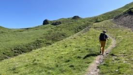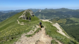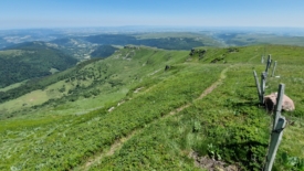 Point de boucle, certes, mais néanmoins Stefano nous épargne la descente vers Super Lioran par l’itinéraire de montée. Nous restons sur les crêtes et partons vers le nord, en direction du puy du Rocher.