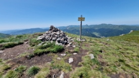 Le puy du Rocher, protubérance presque insignifiante le long du sentier, est simplement marqué par un cairn.