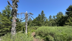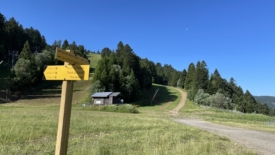 Pour nous éloigner des pistes et trouver un peu d’ombre, nous choisissons l’itinéraire le plus long, celui qui dessine un long crochet vers l’ouest avant de passer sous un télésiège.