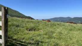 Le bétail s’étale dans les prés. Malgré la présence de veaux, les bêtes nous regardent nonchalamment passer. Prudents, nous gardons néanmoins une belle distance entre nous et leurs sabots.