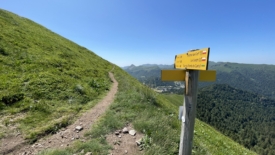 Un peu avant la prochaine excroissance – l’Aiguillon -, nous quittons la crête pour descendre vers Le Lioran.