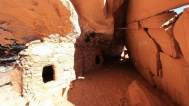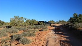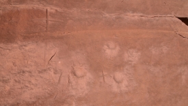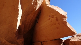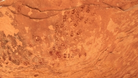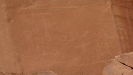Vaughn nous dit qu’il va continuer de faire le tour de Polly’s Island pour montrer un panneau de pétroglyphes à sa cliente. Nous lui demandons si nous pouvons le suivre et il est OK. Lorsque nous lui disons qu’après nous devons encore retourner à la voiture, il nous regarde, penche la tête sur le côté en nous traitant de fous. Eux passent la nuit, plus la prochaine, ici, dans le Grand Gulch.