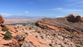Le Moab Rim Trail, les LaSal Mountains et Moab.