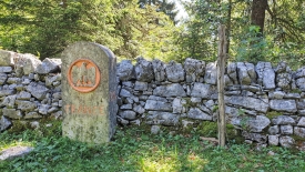 De vieilles bornes, marqués de la fleur de lys côté français et des lettres « LP » (pour Liberté et Patrie), accompagnent le mur.