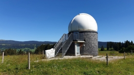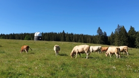 En arrivant au pâturage de La Capitaine, Stefano, qui a aperçu un bâtiment entre les arbres, me dit : tu as vu la construction futuriste ? Heu non, je n’ai rien vu. En fait de construction futuriste, il s’agit d’un observatoire, L’Astroval.