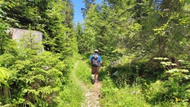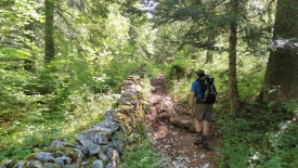 Un monsieur d’un age certain en sort, avec une belle chevelure argentée. C’est Monsieur Capt, du même nom que le chalet vu hier, mais pas de la même famille nous assure-t-il avec véhémence. Il nous parle d’une randonnée annuelle, organisée par une société locale, qui retrace le chemin des passeurs. Il nous dit que quelque part, dans la forêt du Risoud, non loin, il y a une borne avec des inscriptions espagnoles. Car oui, ce n’est en 1678 que le Comté de Bourgogne est rattaché définitivement à la France.