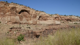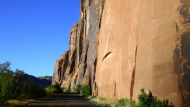D’abord la route qui longe le Colorado. Il y a le Colorado (bien sûr, la route et la falaise). Falaise utilisée comme terrain de jeu de grimpeurs.