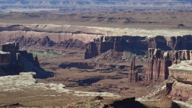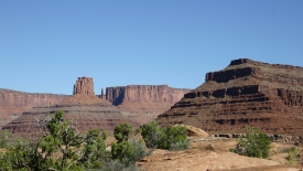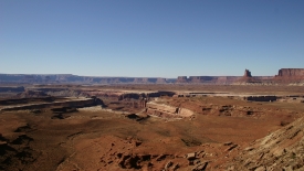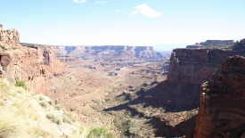 Ensuite, route en terre battue vers Canyonlands, avec quelques passages assez techniques. Petite frayeur de MC au détour d’un virage où la route surplombant le Colorado était juste assez large pour nous laisser passer.