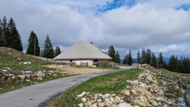 Au loin, le chalet des Apprentis et, plus près, celui le chalet de La Dôle.