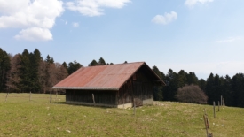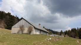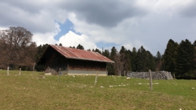 Partis de la maison sous un ciel bleu vierge de tous nuages, nous constatons qu’il n’en est pas de même pour les crêtes du Jura. Je vous laisse apprécier les gros nuages noirs et antipathiques que nous trouvons à La Goncerue.