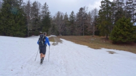 La neige devient plus présente alors que nous nous dirigeons vers le Crêt de la Neuve.