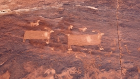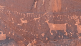 Voilà pour ce qui est des pétroglyphes, c’est un joli panneau, très finement dessiné. À noter la ligne ondulée qui le traverse horizontalement.