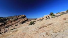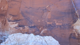 C’est au bout du canyon, en haut à droite, presque au bord du Comb Ridge que nous allons trouver Procession Panel.