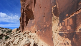C’est sous un ciel bleu que nous partons en direction de Bluff et plus précisément du Butler Wash pour aller redécouvrir le magnifique Procession Panel.
