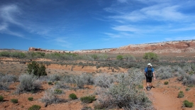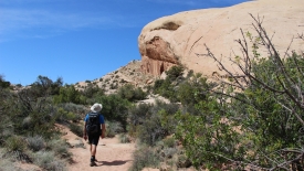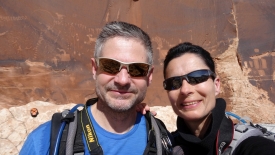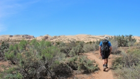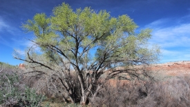 Évidemment, nous traversons le Butler wash, et ses tamaris envahissants. Il est là, derrière nous.