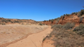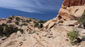 Nous attrapons un wash perpendiculaire, sablonneux à souhait mais heureusement longeant du slick rock.