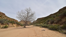 Nous restons dans le wash et trouvons sans problème la bifurcation. Elle est au niveau du lit d’un petit wash qui vient rejoindre le wash principal. Tout à l’heure, en passant ici, j’avais hésité à aller l’explorer car quelques traces de pas étaient présentes.