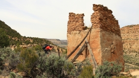 Ce site est récent, comparé aux ruines que nous avons l’habitude de voir. Il date de la période dite Navajo Gobernador (1700-1775). La pièce centrale, construite sur le rocher est la seule construction encore debout. Des autres pièces il ne reste que des alignements de pierre, hauts d’une vingtaine de centimètres, dont certains ont été « absorbés » par la végétation.