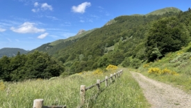 Au niveau de la vacherie du Griou, la piste s’arrête laissant place à un sentier plus étroit.
