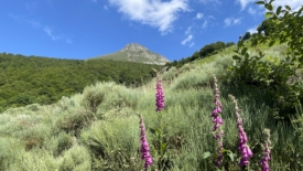 Quatrième jour dans le Cantal. Nous avons biffé de la liste des « must do du Cantal » les sommets principaux autour du Lioran. Heureusement, refaire une même balade ne nous rebute pas, bien au contraire. Surtout un sommet, car en général, plus d’un sentier y mène. Nous voici donc partis pour le puy Griou par un tout autre itinéraire. Nous allons cette fois le contourner par l’ouest.