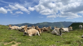 Un peu avant le col de Rombière, un troupeau de vaches nous regarde passer, sans broncher. Ah des vaches avec des cornes… c’est quand même plus joli…