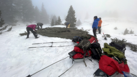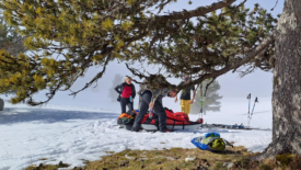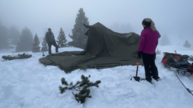 Récit de la première journée de notre « expédition » dans le Vercors. Partis du parking de Beure, nous cheminons vers les hauts plateaux, tirant nos pulkas. L’installation du campement nous prend deux bonnes heures, récompensées par un chouette diner autour d’un poêle fumant.