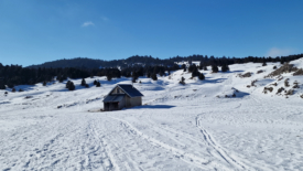 Si les traces laissées sur la neige témoignent d’une belle fréquentation c’est tout simplement parce que, depuis un moment, nous avons rejoint le GR 93 – Traversée du Vercors, qui relie Peyrus (Drôme) au lac de Peyssier (Hautes-Alpes).