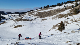 Le terrain est maintenant vallonné. Eric nous promet une autre montée un peu exigeante. Mais en l’attendant, la balade est aisée et plaisante. Malgré les peaux, nous ressentons une bonne sensation de glisse.
