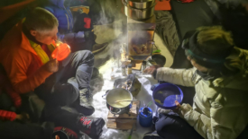 Vers 22h, nous nous préparons pour la nuit. La température est descendue et de la vapeur d’eau sort des bouches à chaque mot formé. Nous ne regrettons pas d’avoir loué des matelas 4 saisons et des duvets à la température de confort de -15°.