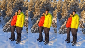 Sa belle doudoune jaune gardera des traces indélébiles de notre soirée au coin du poêle. Comme celle de Simon d’ailleurs. Tel Icare qui brûla ses ailes en s’approchant du soleil, la fine toile de Pertex qui emprisonne le duvet n’a pas résisté à la chaleur du tuyau, et ce, sans même l’effleurer. Pour Simon, deux grands morceaux de duct tape gris argenté ont été nécessaires pour colmater le trou d’où s’échappaient quantité de plumettes blanches. Côté Stefano, seule une petite rustine a suffi pour garder prisonnier le duvet.