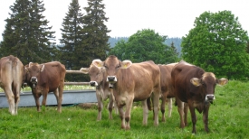 Et là, nous rencontrons un troupeau de vaches de race brune fort entreprenantes, c’est-à-dire pas trop timides car elles viennent à notre rencontre.