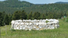 Par endroits, nous observons des tas de pierres provenant de l’épierrement des pâturages, que nous appelons entre nous « tumulus » (ou tumuli au pluriel).