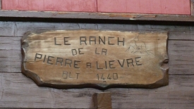 Nous parvenons à rejoindre un chalet, qui porte le nom curieux de Ranch de la Pierre à Lièvre, où nous nous abritons sous le toit et en profitons pour casser la croûte.